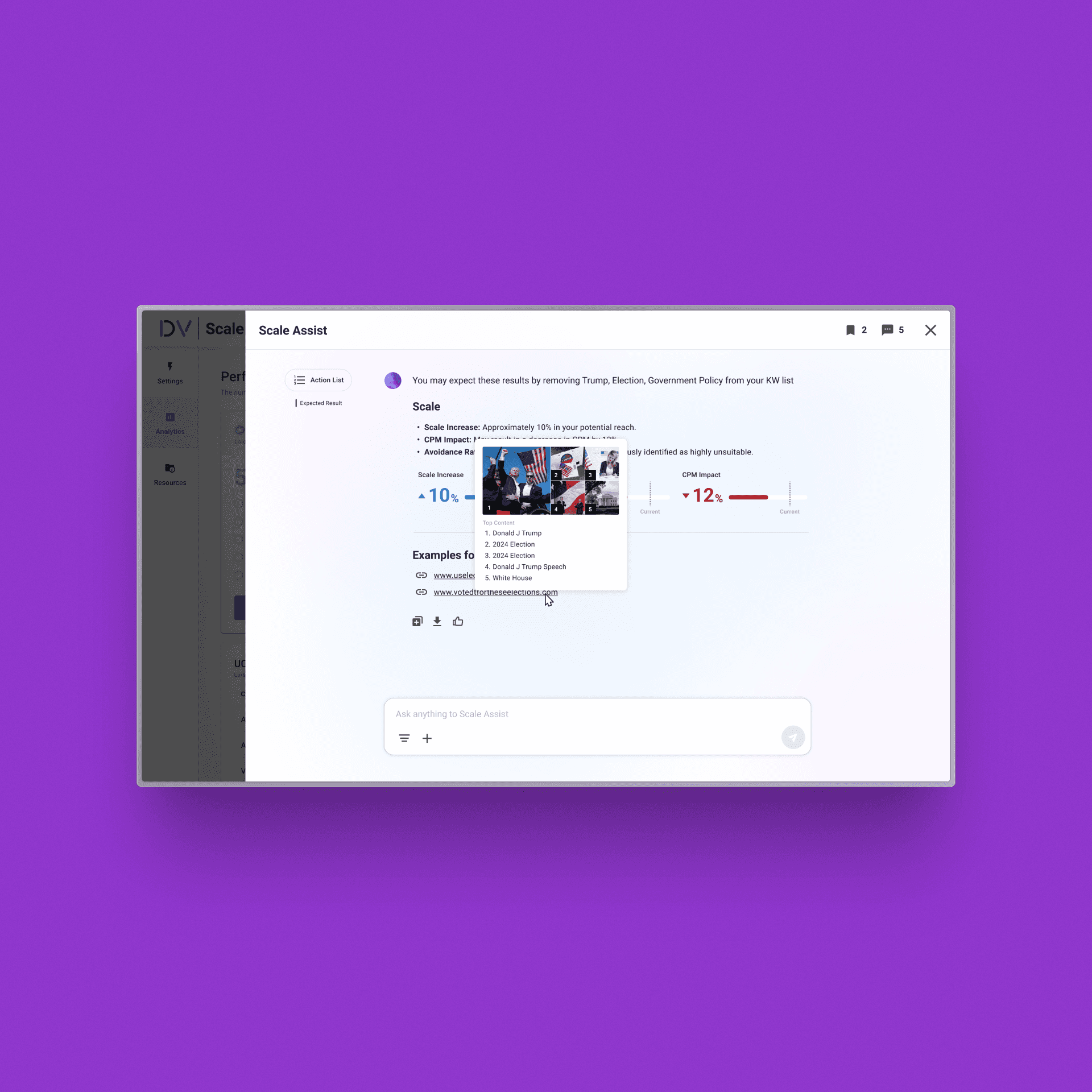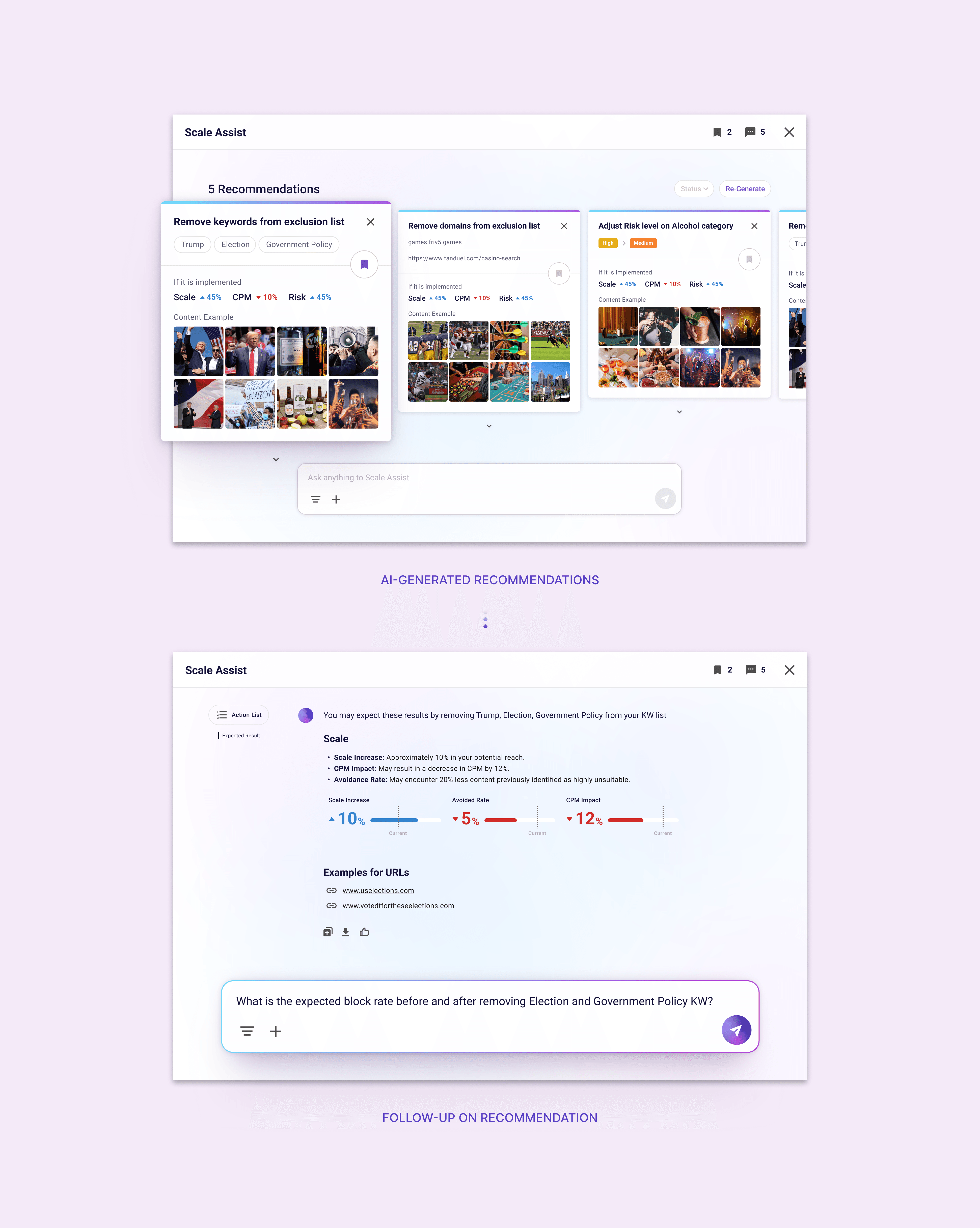 Users can review and validate these recommendations directly within a conversational interface, ask follow-up questions, and explore projected outcomes before taking action. This enables a more transparent and informed decision-making process, allowing users to confidently optimize campaign performance while maintaining brand safety.