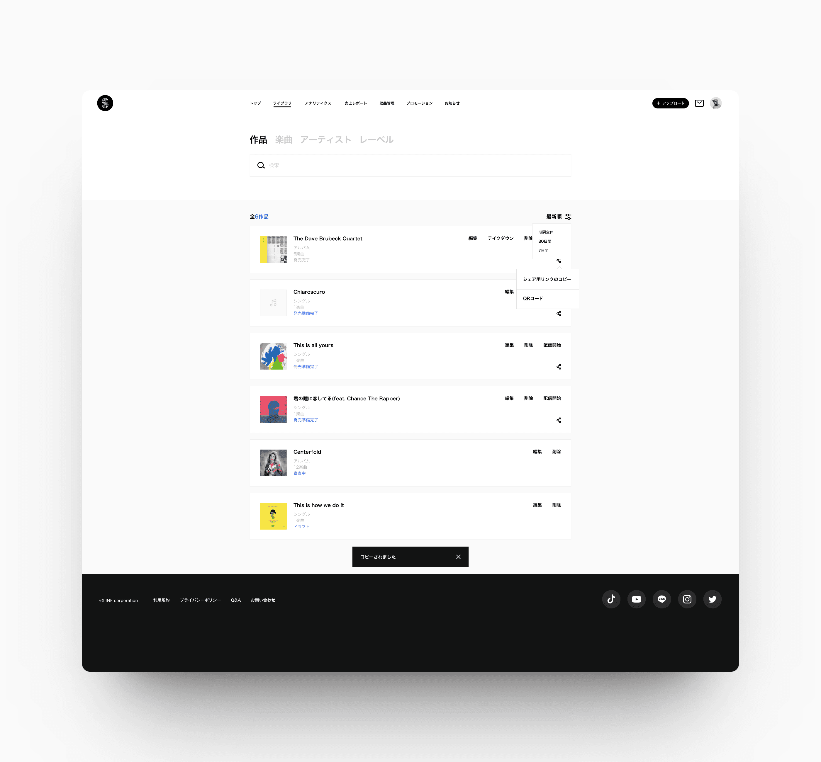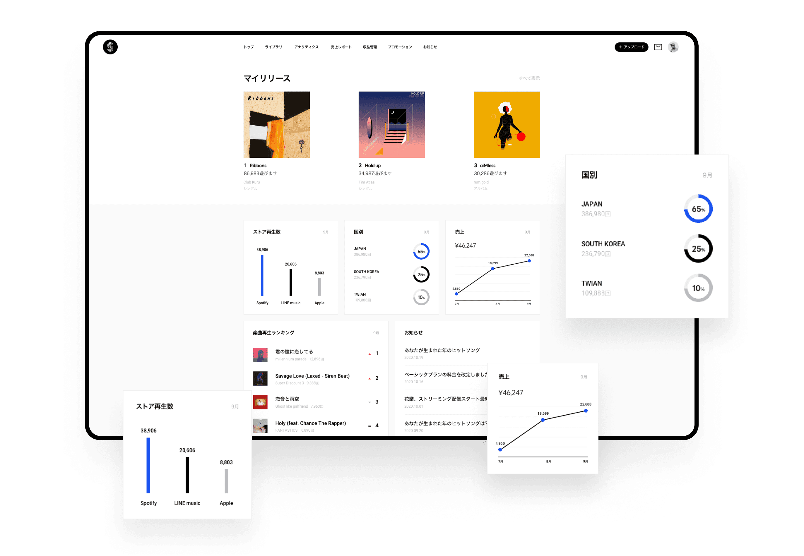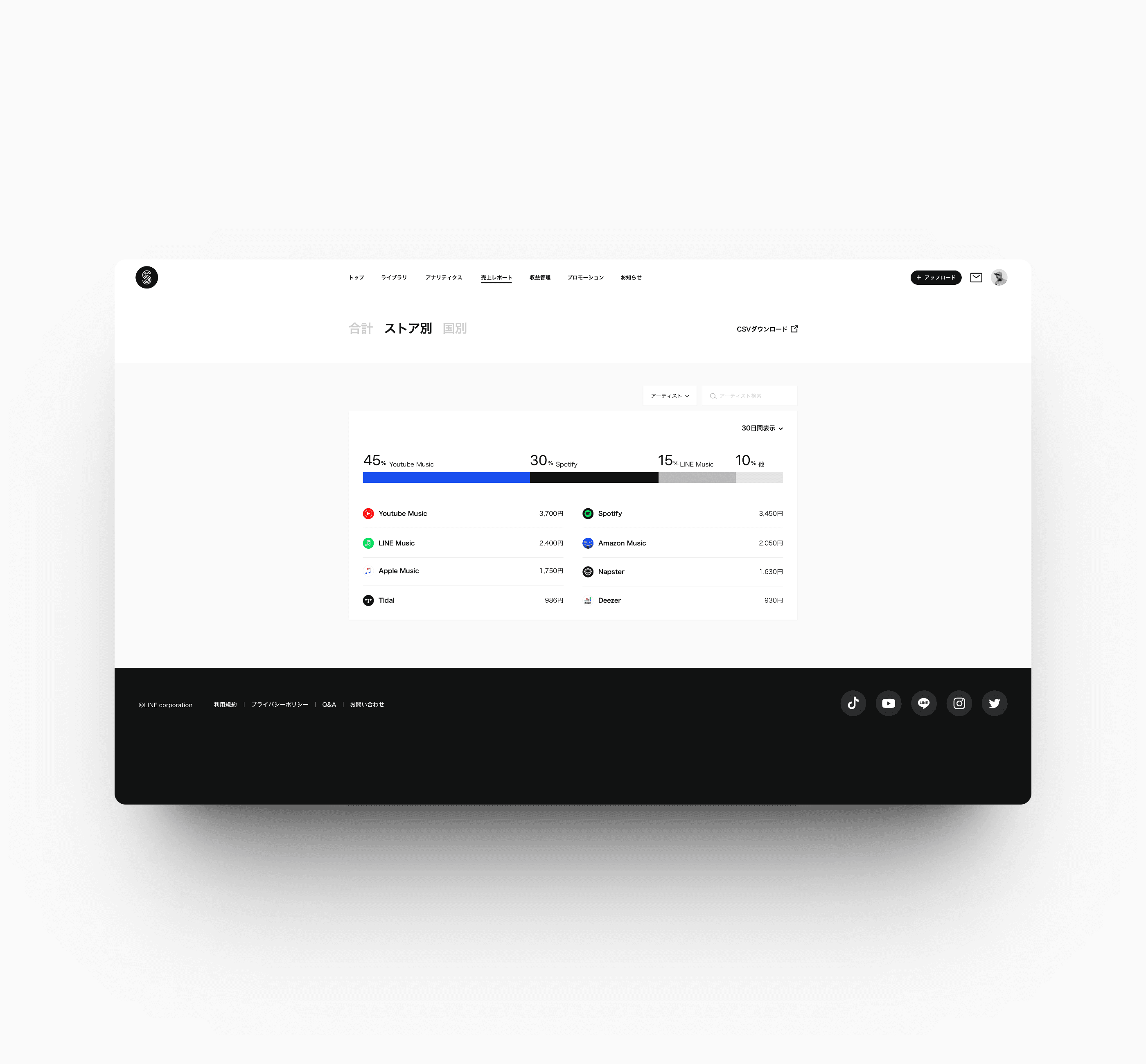 The service is aiming for providing music distribution service to everyone who wants to show their music to the public across the world and also manage their outcome. With our easy-to-use design, everyone whoever they are should enjoy the service.